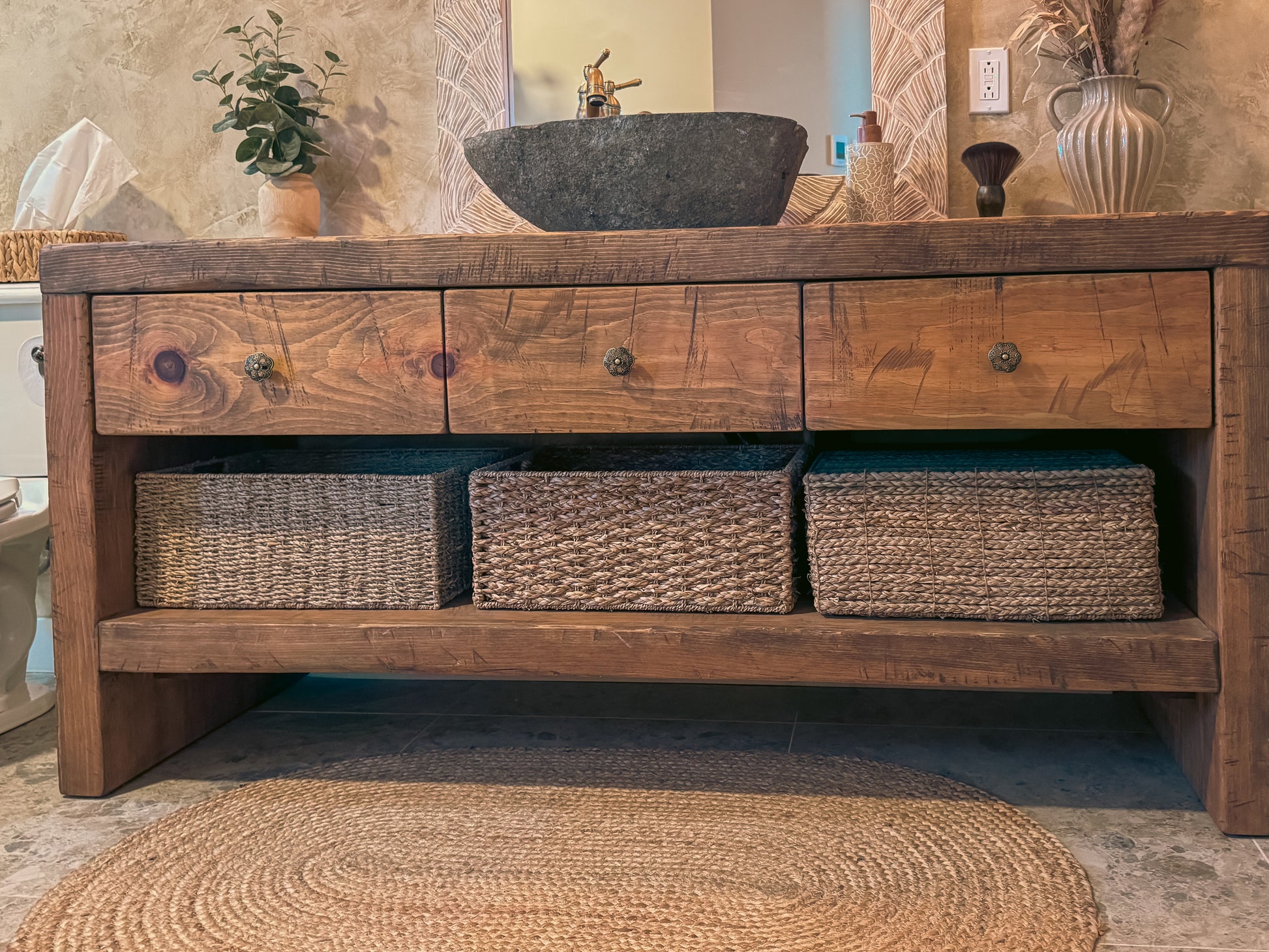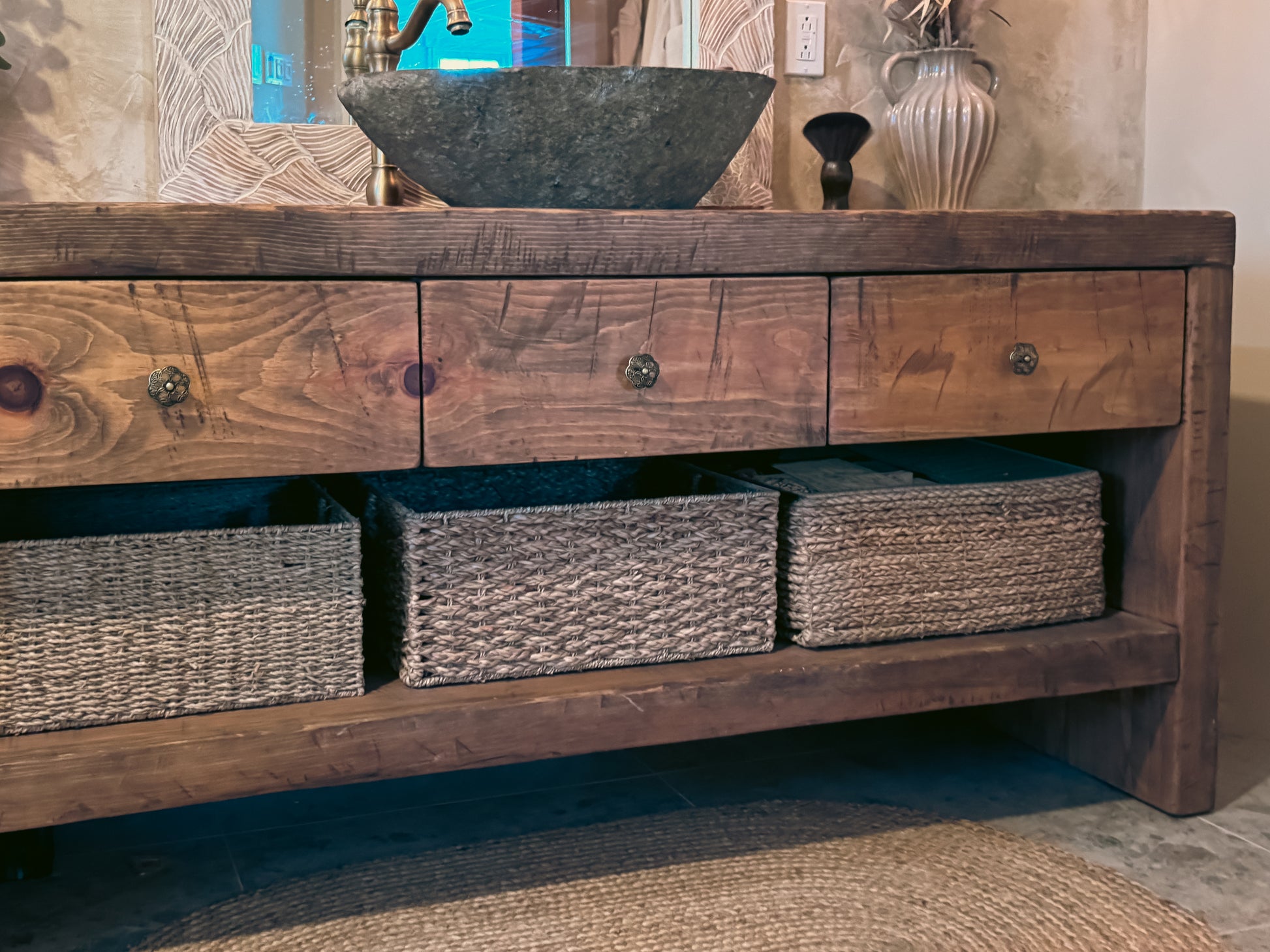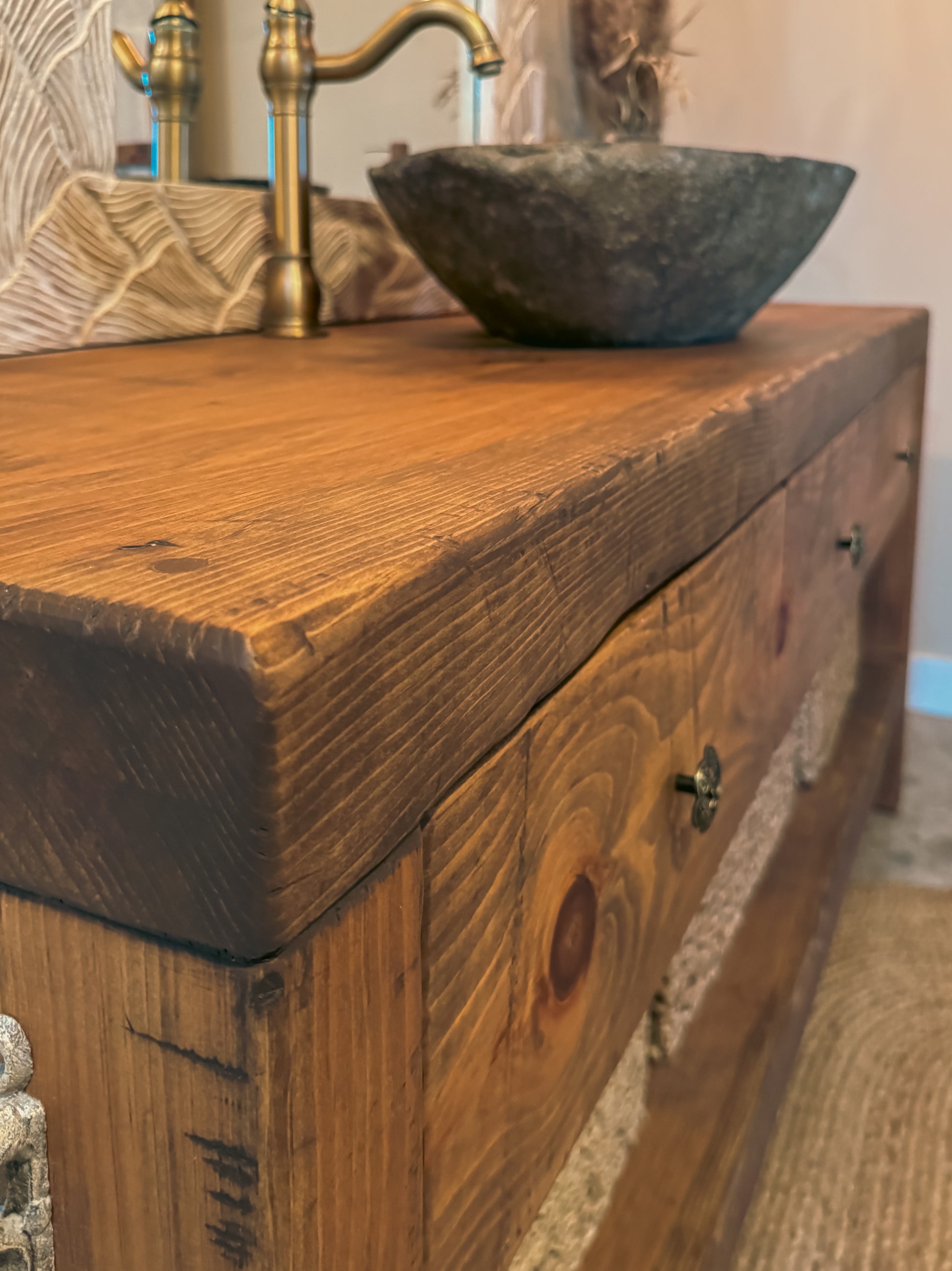 La Vanité ARBOR est une vanité de salle de bain en pin massif, pensée comme une pièce d’ancrage : généreuse, durable et résolument authentique. Sa présence vient de la matière — et de la façon dont elle est assemblée.
