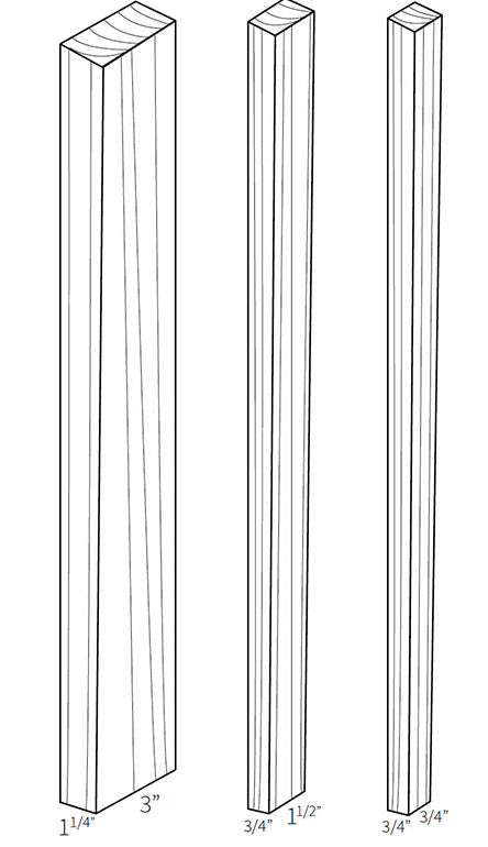 Lattes de bois verticales en bois massif (paquet de 5 lattes)